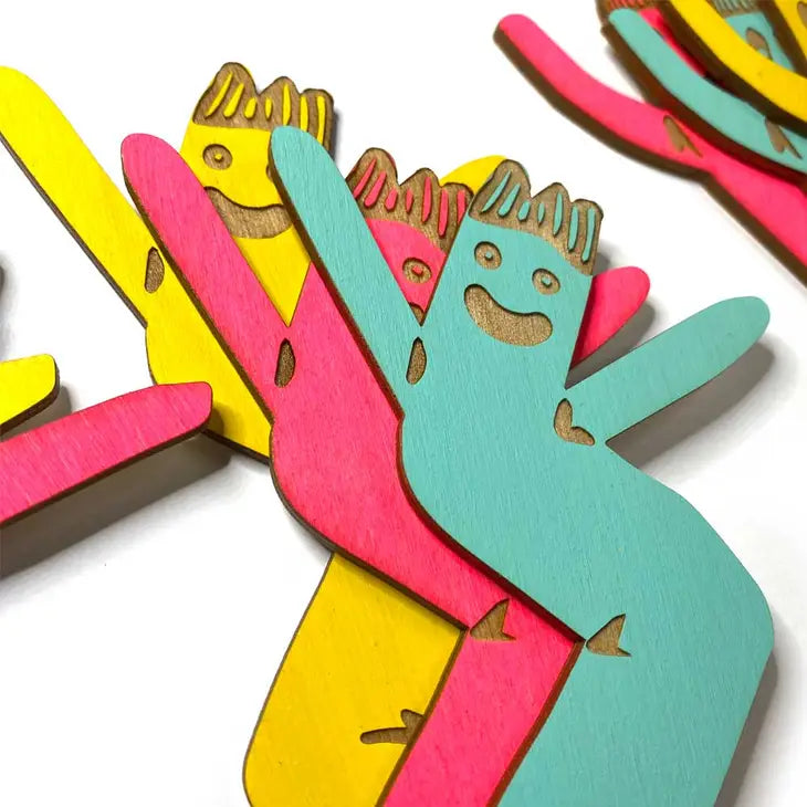 Each air dancer is made of laser-engraved hand-painted 1/8" baltic birch plywood